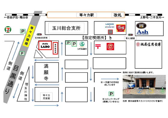 駐車場住所:世田谷区等々力3-13-4(スタジオ裏側)